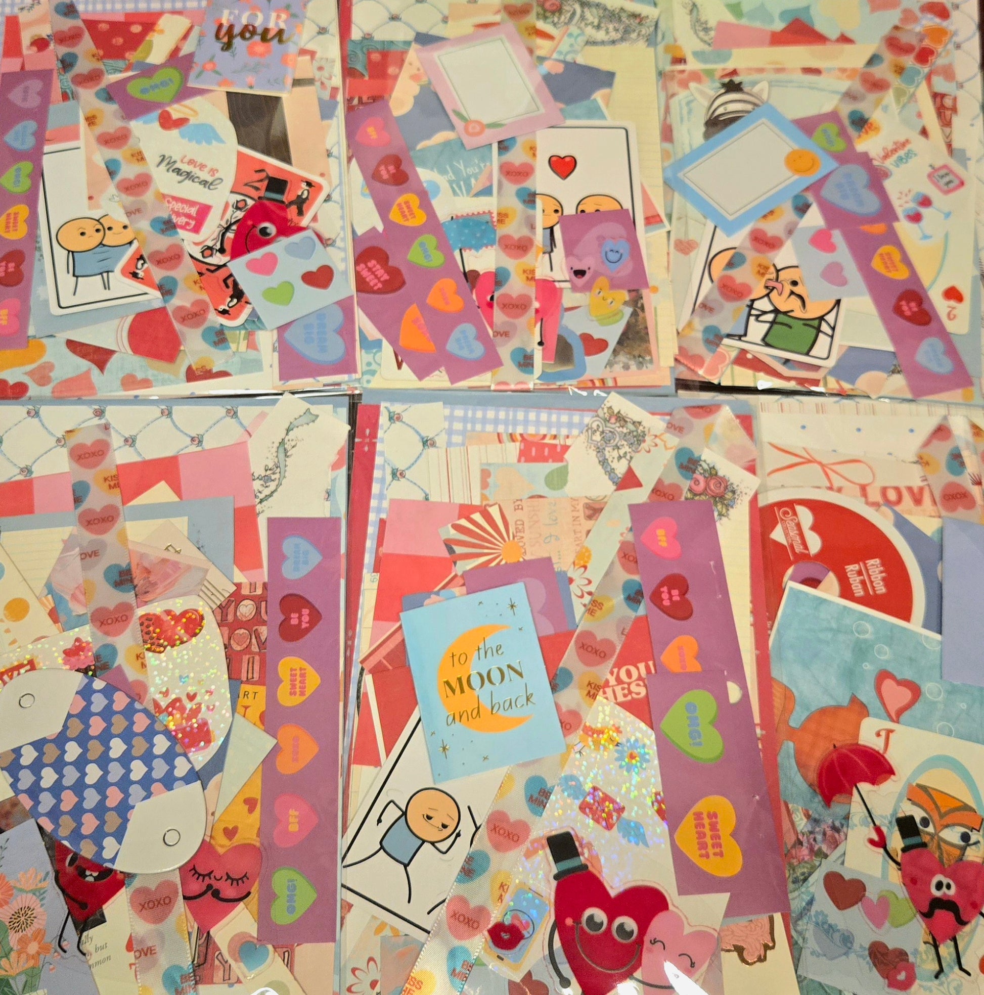 This blue Valentine's themed Mini Inspiration Pack includes an assortment of patterned papers, stickers, ribbon and more.